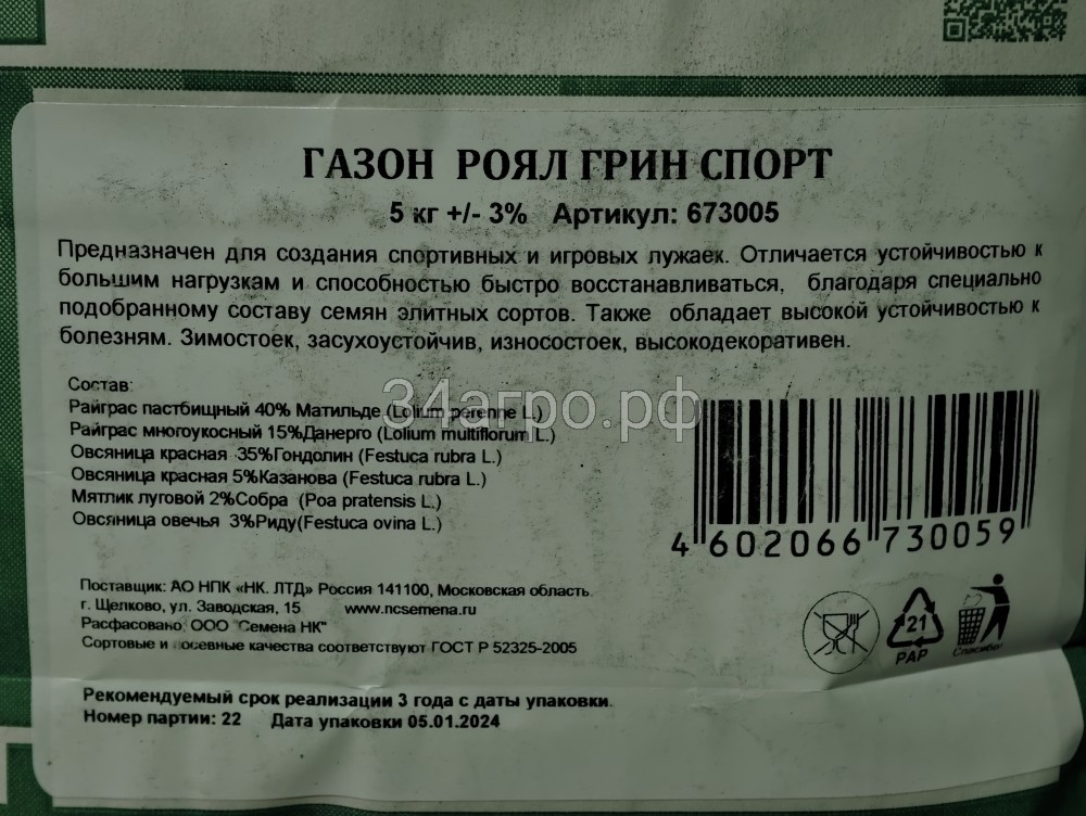 Предназначен для создания спортивных и игровых лужаек. Отличается устойчивостью к большим нагрузкам и способностью быстро восстанавливаться, благодаря специально подобранному составу семян элитных сортов. Также обладает высокой устойчивостью к болезням. Зимостоек, засухоустойчив, износостоек, высокодекоративен.
