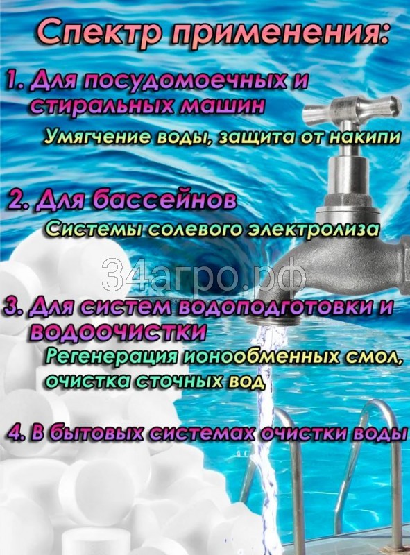 Это не просто соль, а специализированное средство, созданное для заботы о вашей технике и безупречной чистоте посуды. Универсальность формы и высочайшая чистота делают таблетированную соль «Аксон» незаменимым продуктом для водоподготовки и ухода за бассейном. Она используется в солевых электролизерах, которые производят дезинфицирующее средство для воды непосредственно из соли. Это экологичный и эффективный способ поддерживать ваш бассейн в идеальном состоянии без лишней химии. В сфере умягчения воды ионообменные установки требуют регулярной регенерации. Соль таблетированная «Аксон» идеально для этого подходит.