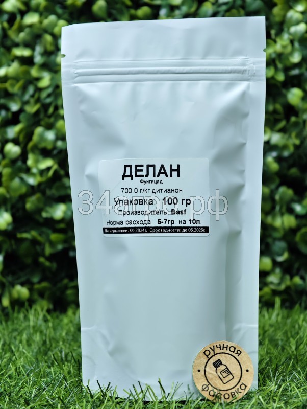 Отличительная черта применения Делана состоит в том, что некоторая резервная часть его действующего вещества имеет отсроченное влияние. Она постепенно растворяется в дождевой или поливной воде, попадающей на опрысканную поверхность, и вновь активизирует работу фунгицида. Этим обеспечивается продолжительность и стабильность защитного действия.