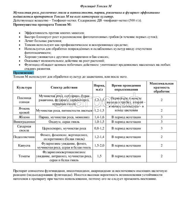 - Использование Топсин-М®, КС дает возможность разрабатывать максимально эффективные системы защиты и исключить возникновение резистентности у патогенов;