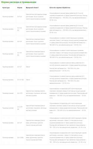 Культура | Норма | Вредный объект | Способ и время обработки |