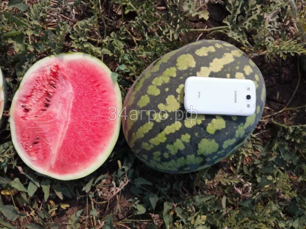 Средне-поздний (85-97 дней) сорт. Растения мощные. Плод средний массой 15 кг, отдельные плоды до 20-30 кг. Кора плотная и прочная. Мякоть яркая, красно-розовая, плотно зернистая, сочная и сладкая. Транспортабельность хорошая, лежкость высокая. Урожайность 50-70 т/га